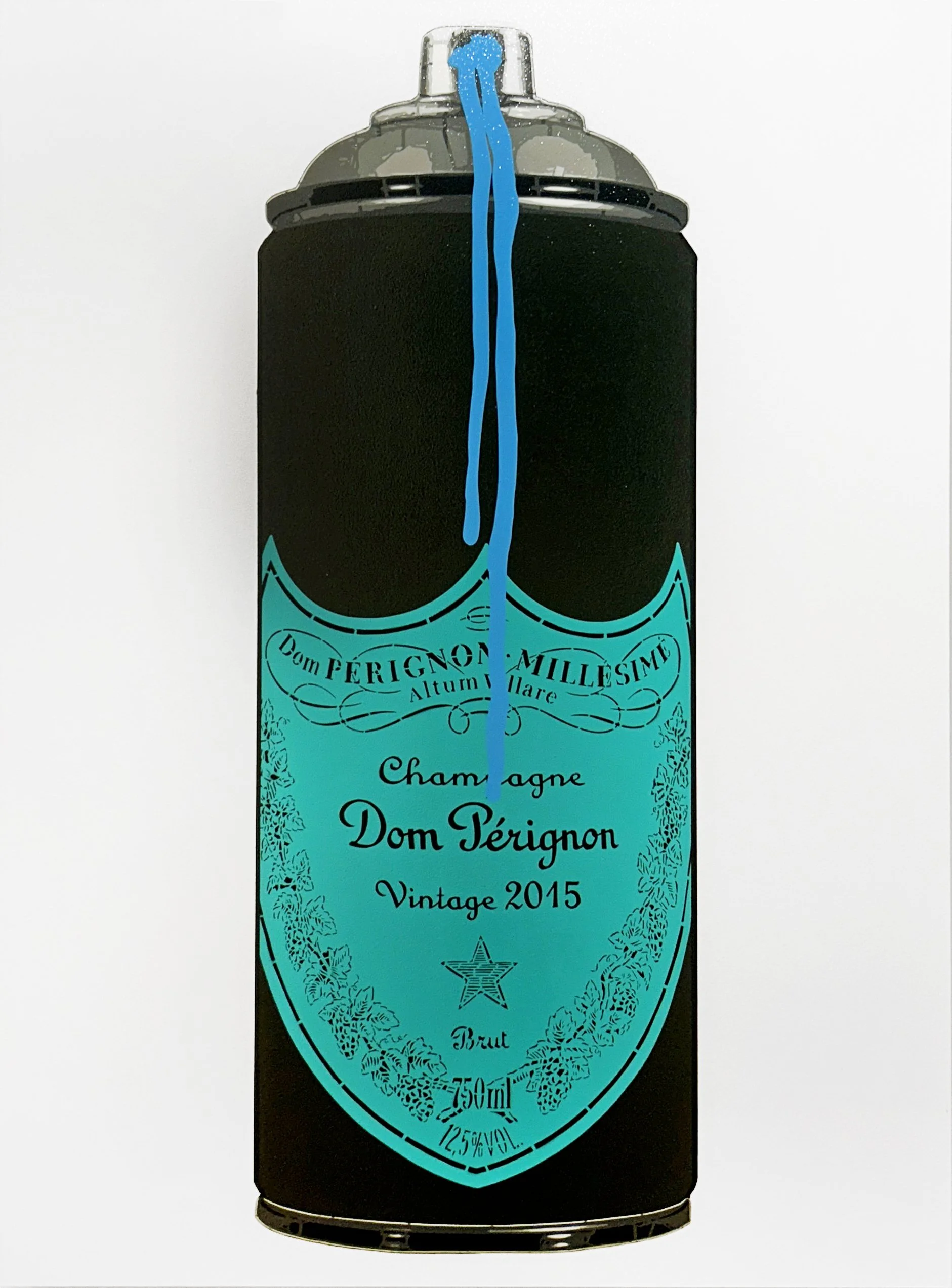 Beyond the spray cans, La Pun’s stencil paintings depict recognizable icons such as the Mona Lisa, Muhammad Ali, and elite wine and liquor labels. His process is painstaking and technical: each multi-layered work requires two to three weeks to complete. He designs and cuts every stencil by hand, layering color and text with precision to recreate logos, labels, typography, and surface textures. His ability to reinterpret luxury branding has led to collaborations and commissions with global names including Dom Pérignon and Bombay Sapphire, and select high-end clients across the fashion and spirits industries.