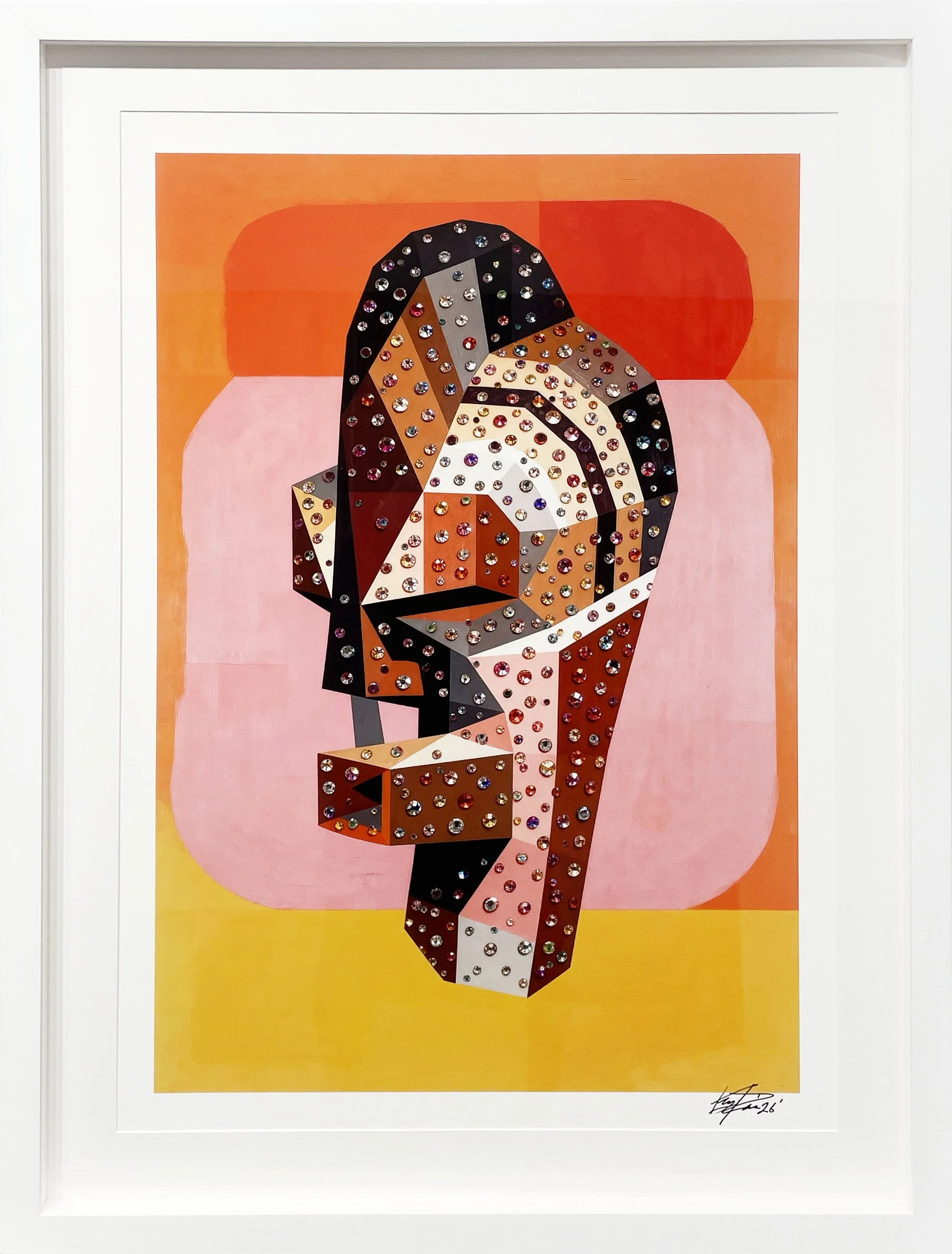Following the debut of his Guardians series, Paris expanded his practice into highly refined painted works that merge fine art with sculptural intervention. In March 2026, he will release an exclusive body of work in collaboration with DTR Modern Galleries, featuring unique painted variants finished with hand-embellished Swarovski crystals and oil pastels. Each piece is individually completed by the artist, transforming the surface into a dimensional, luminous field that bridges painting, sculpture, and luxury craftsmanship. Released as limited editions, these works mark a pivotal evolution in his practice, establishing a new category between contemporary fine art and collectible design.