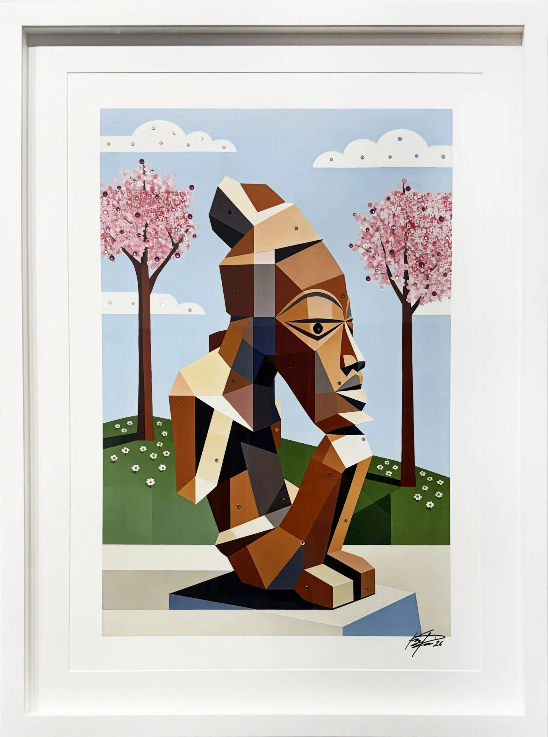 Following the debut of his Guardians series, Paris expanded his practice into highly refined painted works that merge fine art with sculptural intervention. In March 2026, he will release an exclusive body of work in collaboration with DTR Modern Galleries, featuring unique painted variants finished with hand-embellished Swarovski crystals and oil pastels. Each piece is individually completed by the artist, transforming the surface into a dimensional, luminous field that bridges painting, sculpture, and luxury craftsmanship. Released as limited editions, these works mark a pivotal evolution in his practice, establishing a new category between contemporary fine art and collectible design.