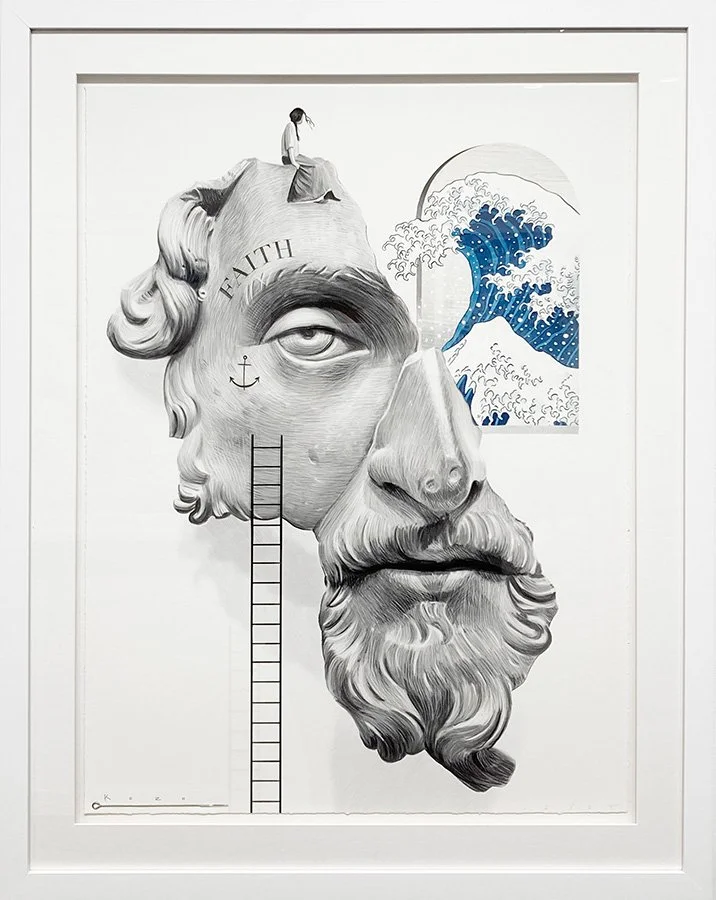 In recent years, Kozo has returned to his original love of painting and drawing, translating his tattoo compositions back into traditional mediums such as canvas and paper. His fine art demonstrates the same expressive clarity, precision, and minimalism that made him famous in tattooing, offering collectors one-of-a-kind works that balance hyper-refined technique with emotional resonance. His influences range from Rembrandt, Van Gogh, and Jacques-Louis David to Korean contemporary artists and global pop culture; he draws inspiration from travel, discipline, and the belief that simplicity can hold profound meaning.