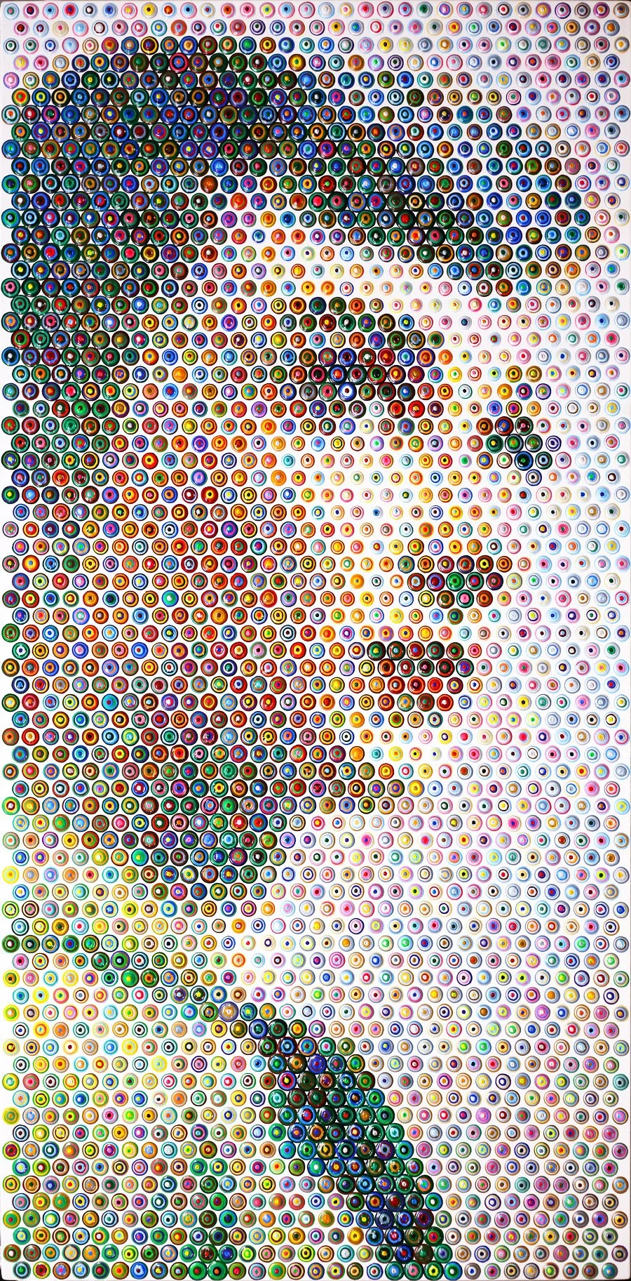 Rain studied Art and Neuropsychology at the University of Cape Town in the late 1980s and early 1990s, a dual foundation that continues to shape his work. His interest in perception, cognition, and the mechanics of vision led him to develop his hallmark technique around 2004. Drawing inspiration from Georges Seurat’s pointillism and early 20th-century Russian avant-garde painting, Rain created a new methodology: portraits built dot-by-dot, color-by-color, circle-by-circle.