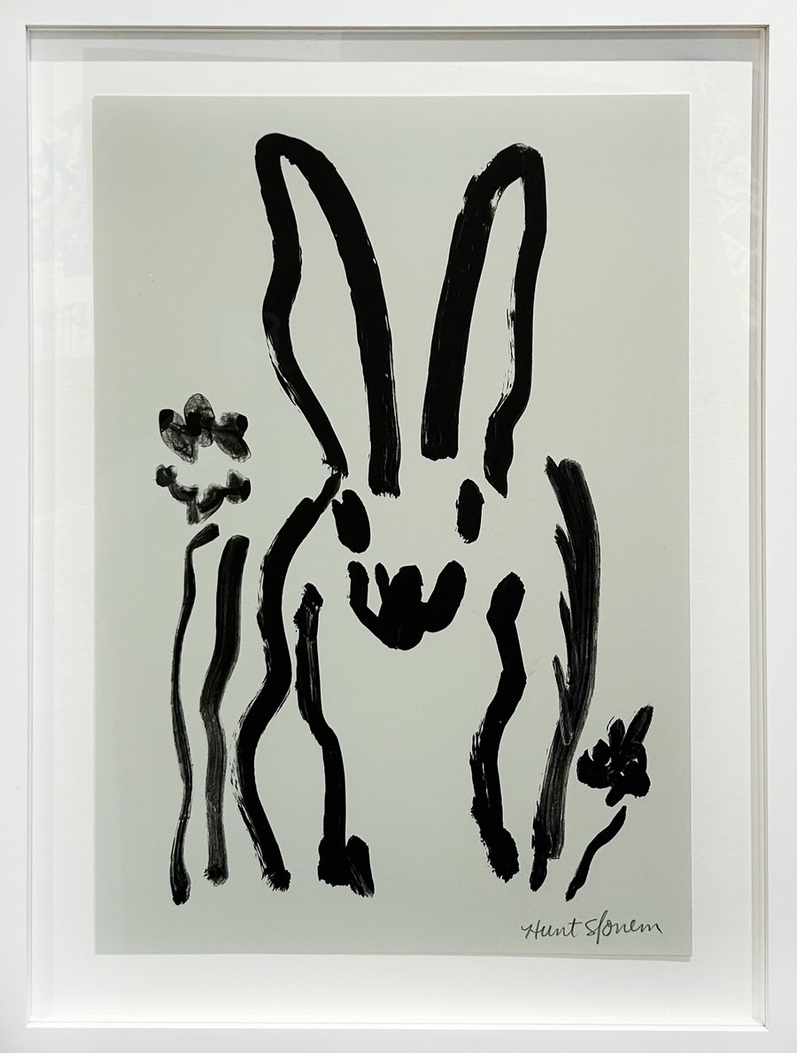 Born in Kittery Maine, and raised across the U.S. and Hawaii, Slonem developed an early fascination with color, ritual, and the natural world. His studies at Tulane University and travels through Mexico and Nicaragua further shaped his artistic and spiritual vocabulary, inspiring early works infused with religious and cultural symbolism. After moving to New York in the 1970s, he refined his now-signature serial imagery (his bunnies, butterflies, and birds most notably) drawing inspiration from both Pop Art’s repetition and the meditative power of daily artistic practice. He spent time in the studio with other impressive artistic figures, one influential artist being Andy Warhol, whose use of diamond dust in the Factory has inspired Hunt to continue using the medium in his own pieces today as an homage.