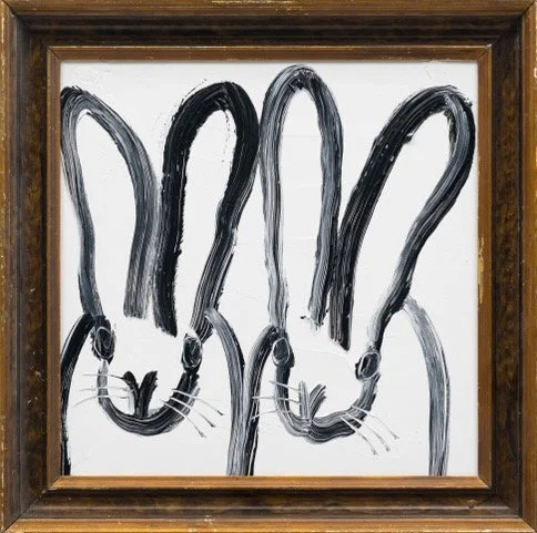 Born in Kittery, Maine, and raised across the U.S. and Hawaii, Slonem developed an early fascination with color, ritual, and the natural world. His studies at Tulane University and travels through Mexico and Nicaragua further shaped his artistic and spiritual vocabulary, inspiring early works infused with religious and cultural symbolism. After moving to New York in the 1970s, he refined his now-signature serial imagery (his bunnies, butterflies, and birds most notably) drawing inspiration from both Pop Art’s repetition and the meditative power of daily artistic practice. He spent time in the studio with other impressive artistic figures, one influential artist being Andy Warhol, whose use of diamond dust in the Factory has inspired Hunt to continue using the medium in his own pieces today as an homage.