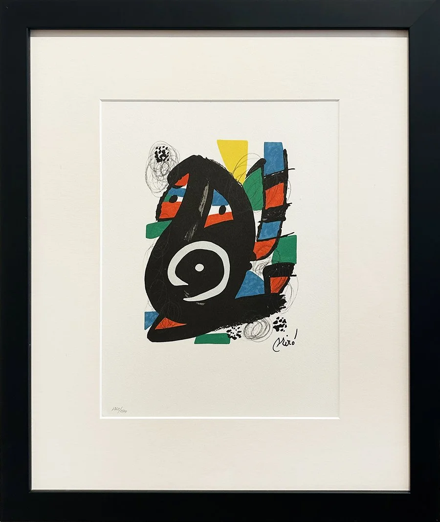 Miró’s career transformed after 1919, when he began moving between Barcelona and Paris. Immersed in the intellectual world of the Dadaists and later the Surrealists, he developed a visual language entirely his own: bold primary colors, fluid biomorphic forms, floating signs, and a poetic sensibility rooted in nature, memory, and childhood imagination. This synthesis defined the vocabulary that would make Miró one of the most recognizable artists of the modern era.