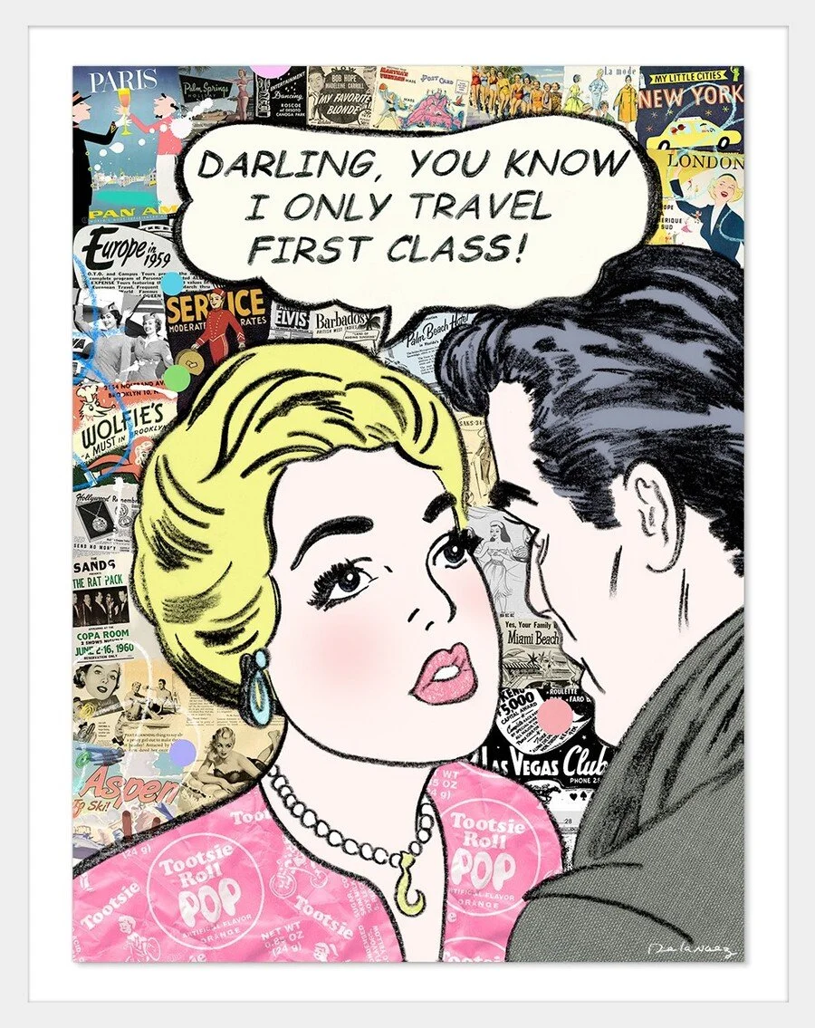 De La Nuez emerged in the early 1980s with a bold pop-culture-forward style featuring Monopoly imagery, vintage board games, pin-ups, Chanel motifs, retro advertising, and glamorous lifestyle references. While rooted in Pop Art’s legacy, he expanded the genre into something distinctly his own. His trademarked technique, “Art on the Edge,” features fully painted sides on canvas and wood, creating multidimensional works that extend beyond the traditional picture plane. He is listed among the “Who’s Who of the Most Collected Artists of Our Time,” and his pieces are known for their originality, humor, and visual impact.