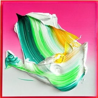 Mixing acrylics, spray paint and resin, Schizas employs a range of methods, from spraying, pouring and dripping paint directly onto the canvas, to using a mixture of traditional brushes and untraditional tools, such as spatulas, to make sweeping, gestural marks, creating amazing acrylic paintings full of live. A self-taught painter as an abstract artist, he expresses through his work a natural and intuitive passion for the materiality of paint, and an instinctual appreciation for emotionally charged color relationships. His fresh and vibrant aesthetic position occupies a space between Abstract Expressionism, Surrealism and Pop, and seems to emanate from a dreamlike and mysterious realm.